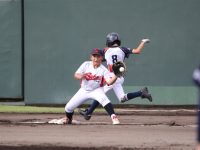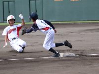 二回裏、旭の吉田結晴選手はスクイズ失敗の後のレフト前適時打で1点先制。三回裏、今井咲太郎選手の三塁線ライン際を抜ける三塁打で3点、次の打者が三振、振り逃げをする間に今井選手が三塁から帰り1点を追加。