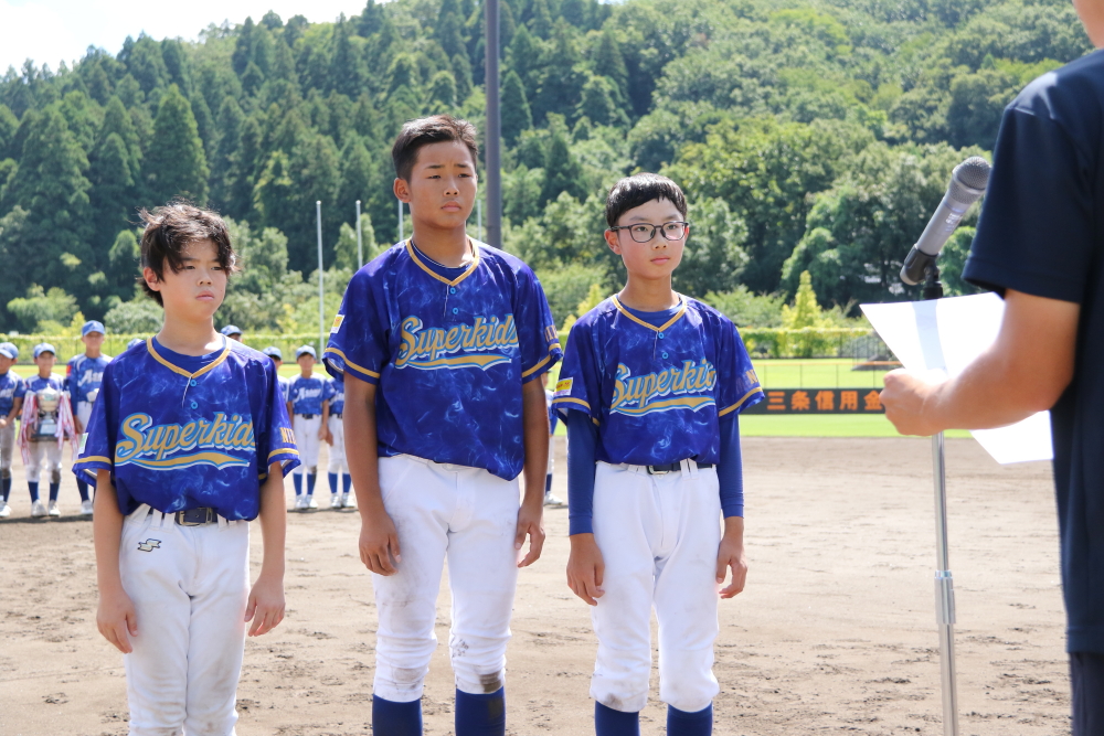 準優勝はスーパーキッズ裏館、3位は西小野球団隼クラブ。