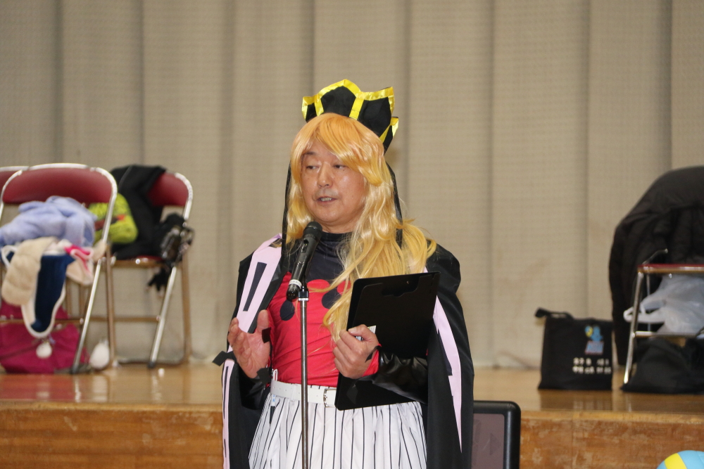 開会式で長沢ブルーモンスターズの味田克博チーム代表は、二つの大事なこととして「一つは仲間を信じて全力でプレーする。もう一つは勝っても負けても相手をリスペクトし、ありがとうという気持ちを大切にしてもらいたい」と呼びかけ、「怪我に気をつけて、ドッジボールも、仮装もスピードガンもモンスター級に盛り上がる一日にしましょう」と開会の挨拶。