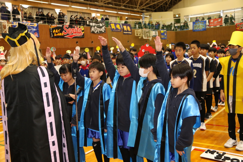 選手を代表して長沢ブルーモンスターズの6年生5人は「我々はドッジボールの選手として試合に参加し、ドッジボールを通じて大切なことを学びました。仲間がいることで試合ができ、試合で勝つことの嬉しさ、負けることの悔しさを経験できました。今僕たちにできることは、この大会を精いっぱい元気を出して全力でプレーをすることです。これまでの感謝の気持ちを一球一球に込め、ここにいるドッジボールが大好きな皆さんの記憶に残る大会になることをここに誓います」と宣誓をしました。